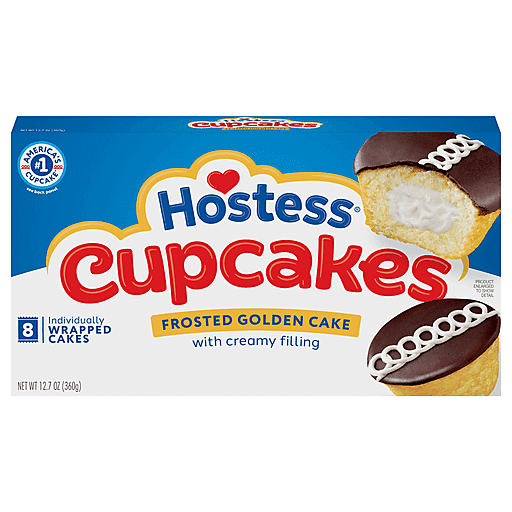 Take a bite into the sweet, cupcake goodness of HOSTESS CupCakes. HOSTESS golden cupcakes are sure to make any age happy. Moist, golden cake is filled with a creamy center, sure to leave you floating on cloud nine. The flavorful chocolate icing is topped with THE ORIGINAL SQUIGGLE, known for sparking joy. Each cupcake is individually wrapped and sealed for freshness. Grab one and LIVE YOUR MOSTESS with a glass of milk or go for a late-night snack. This classic HOSTESS cupcake flavor is everything you'd expect it to be and more. Give your tastebuds a treat anytime, anywhere with our wide selection of classic HOSTESS cupcakes and sweet treats.